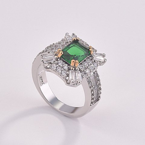 Di vendita caldo smeraldo zircone piazza principessa anello Europee e Americane micro tempestato di diamanti anello di fidanzamento